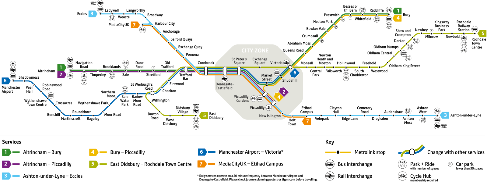 Pokud chceš jen jednosměrnou jízdenku třeba do centra Manchesteru řekneš PICADILLY zaplatíš asi 2,50Ł