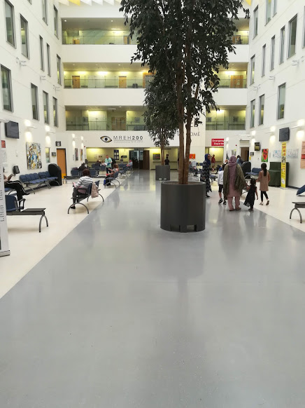 Nemocnici jsem našla bez problémů a přišla mi velmi přehledná a vůbec by mi nedošlo, že je to nemocnice. Při vchodu byla recepce. Spousta obrazů u vstupu a nějaká výstava kreseb podél stěn ve vstupní hale. Uprostřed haly byl stánek s čerstvým ovocem, dokola spousta sedadel a lékárna, nějaké ordinace, a dál značené cedule, kde co najdete. Oční pohotovost byla přímo na konci haly. Všude byly vlastně jen dveře, do kterých jste vešli a byla tam přímo čekárna, prošli jste celou čekárnu až k recepci, kde jste se nahlásili a dozadu za recepcí vedly chodby, kde byly ordinace.